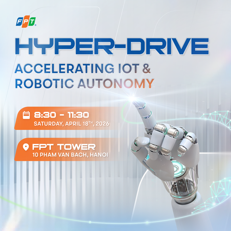 Nhằm tạo điều kiện cho sinh viên tiếp cận sớm với các xu hướng công nghệ thực chiến và mở rộng cơ hội nghề nghiệp tại các tập đoàn lớn, Khoa Điện tử Viễn thông thông báo sự kiện được FPT Software tổ chức buổi chia sẻ chuyên sâu với chủ đề: HYPER-DRIVE: Accelerating IoT & Robotic Autonomy.